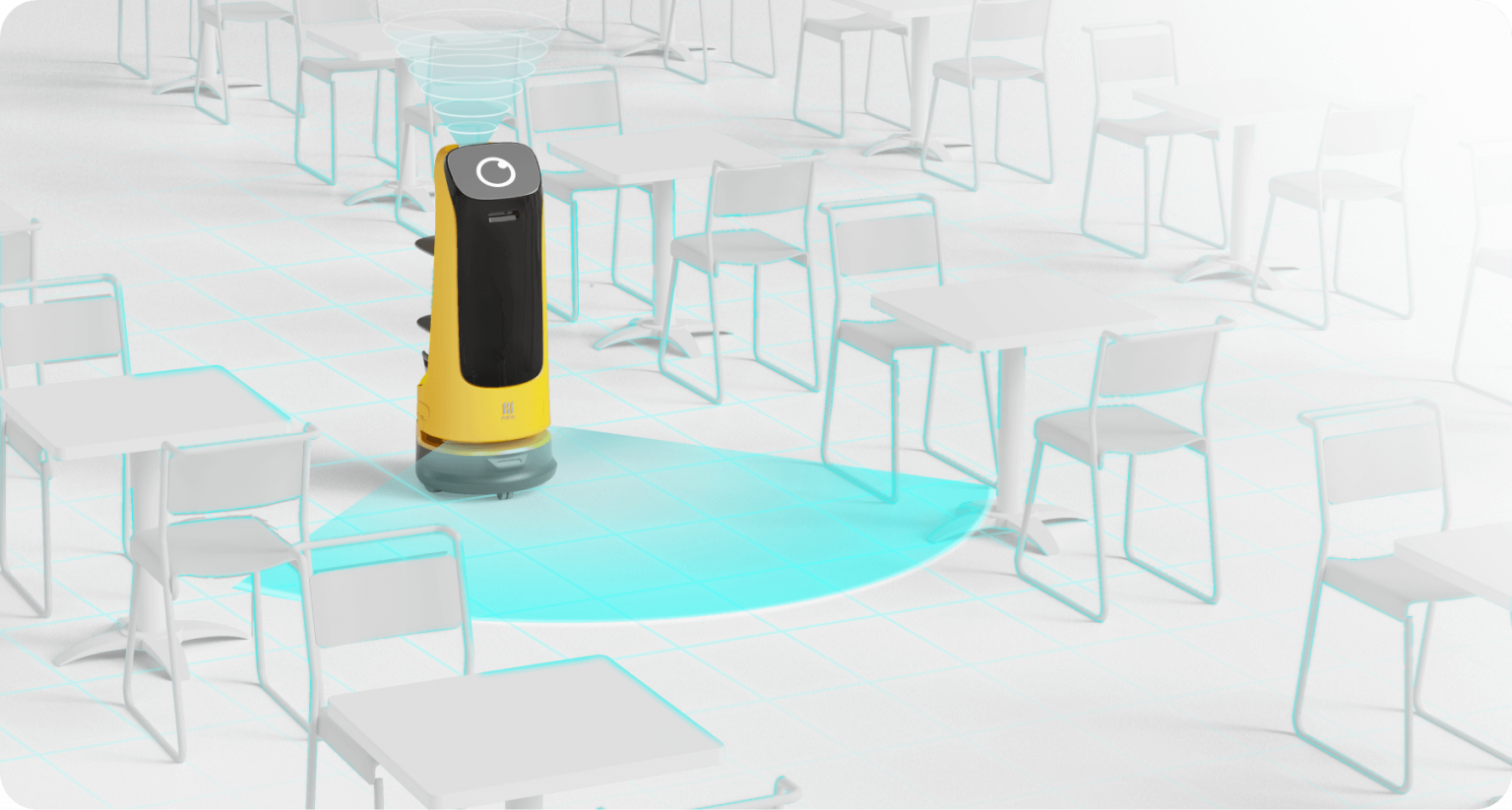 El tamaño compacto y el cuerpo en forma de C inclinado hacia delante permiten al robot atravesar espacios con una separación de solo 55 cm, lo que lo convierte en una opción idónea en ambientes complejos y ajetreados.