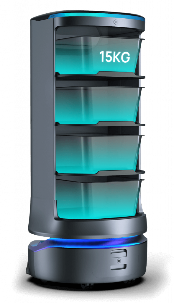 Con una capacidad de carga de 60 Kg, un volumen de 120 l, cuatro bandejas de gran capacidad [1] y atención de múltiples mesas en una sola recogida, les brinda a los restaurantes un volumen de negocio mucho mejor. Traslada los platos, vasos y demás objetos que deposite desde el lugar de origen hasta el espacio de almacenamiento designado, ayudando a mejorar la eficiencia del establecimiento.